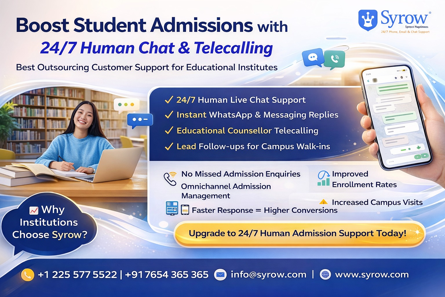 Best Outsourcing Customer Support for Educational Institutions: How Syrow’s 24/7 Human Support & Telecalling Services…