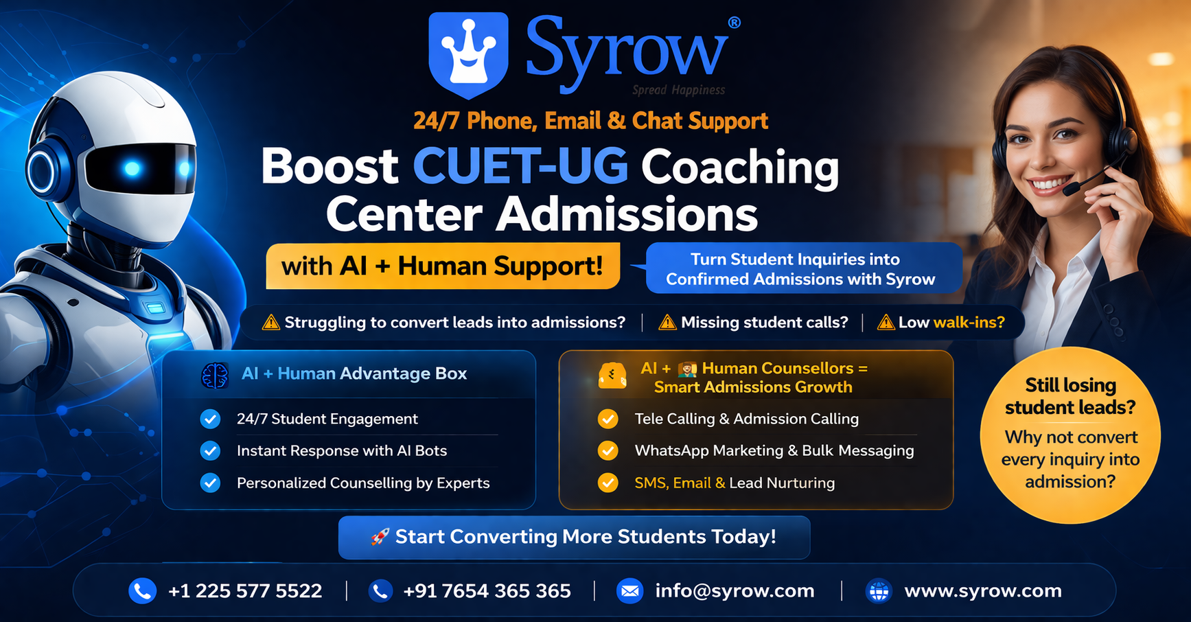 Syrow AI & Human Support for Common University Entrance Test (CUET-UG) Coaching Centre Admission Process | Best Outsourcing Customer Support