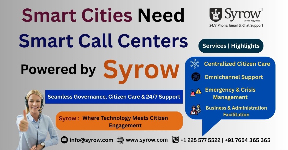 A smart city is founded on smooth connectivity, people’s participation, and responsive government. Through Syrow’s Smart City Call Center Framework, cities can be reimagined as centers of innovation, safety, and inclusive growth.