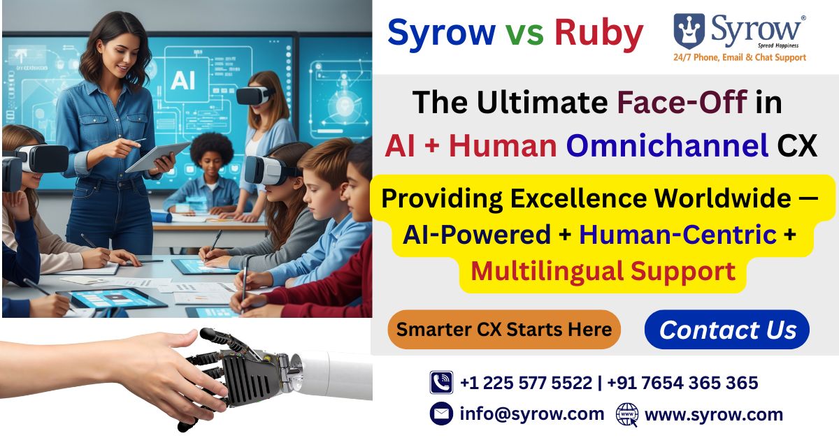 But where each excels in weaving the perfect blend of AI innovation and multilingual communication, which one tops them all with human empathy as well?Let’s jump into a comprehensive comparison between Syrow and Ruby.com and find out who provides the Best Outsourcing Customer Support and the most cutting-edge AI-based Omnichannel Customer Service globally in 2025.