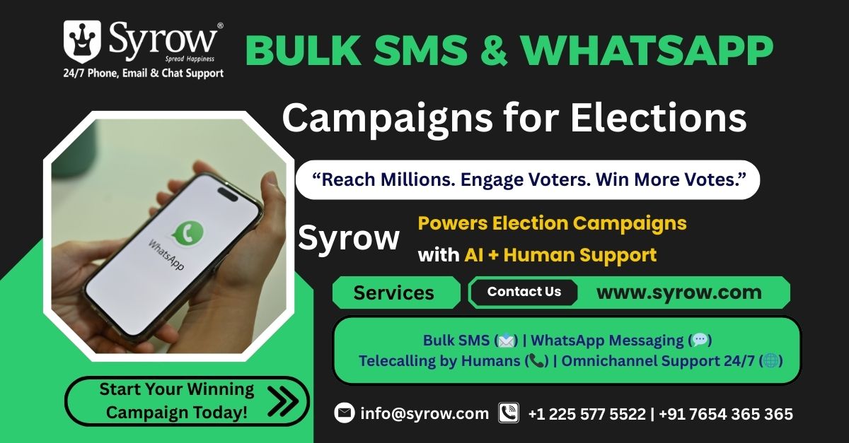 At the center of this revolution is Syrow, a reliable partner and Best Outsourcing Customer Service Company, offering bulk SMS for political campaigns and services of telecalling by humans, WhatsApp automation, omnichannel customer support and AI-driven services.