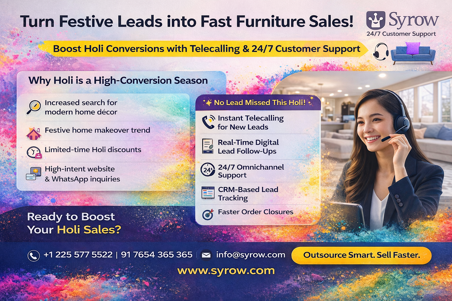 Outsourcing Customer Support for Event & Wellness Businesses during Holi | Grow Faster with Syrow…