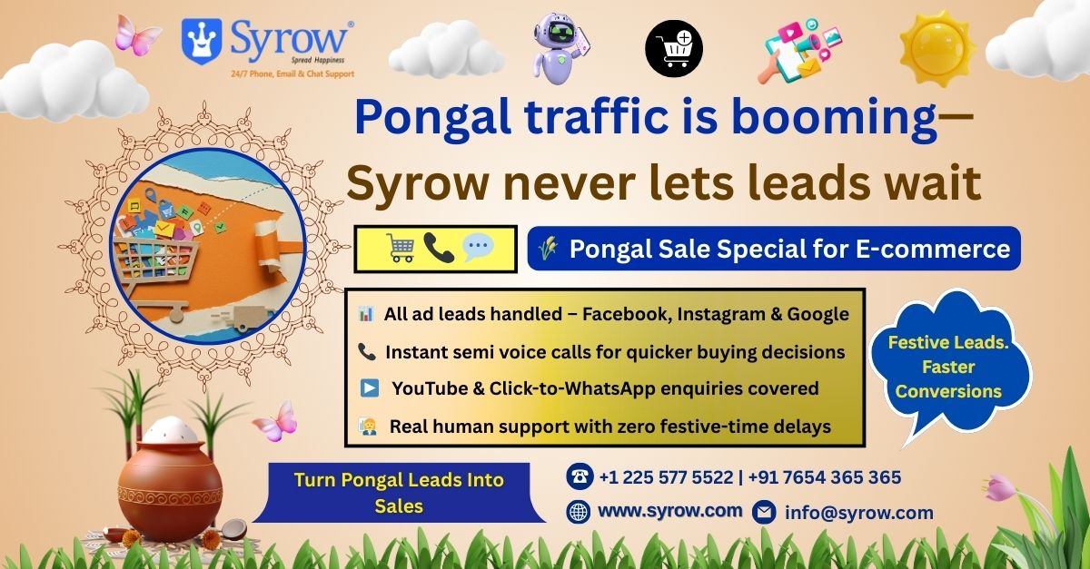 24/7 Omnichannel Customer Support for E-commerce Marketplaces | Syrow omnichannel customer support | e-commerce lead conversion services | Pongal festive sales support | semi voice calling for lead conversion |click to WhatsApp lead handling | Facebook Instagram lead management | AI powered customer support for e-commerce | omnichannel lead management services | Syrow telecalling services by human | festive season e-commerce support