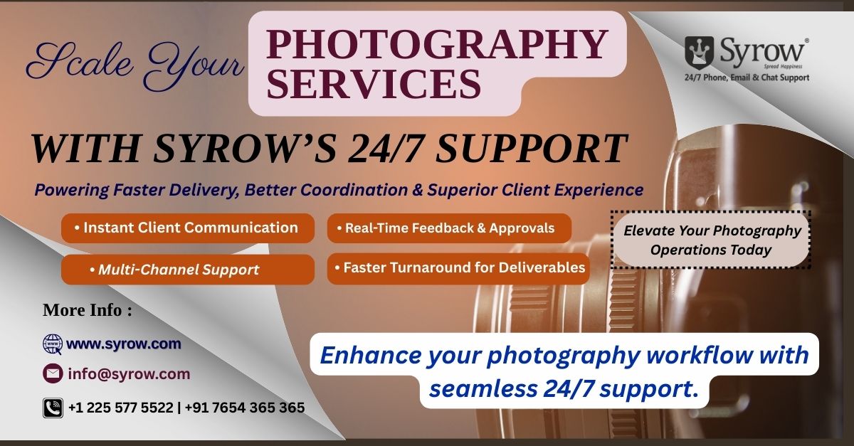Companies like Syrow, leading CX outsourcing partners within the industry, make it possible for photography businesses to scale operations with AI + Human omnichannel support, multi-platform communication, and seamless client management.