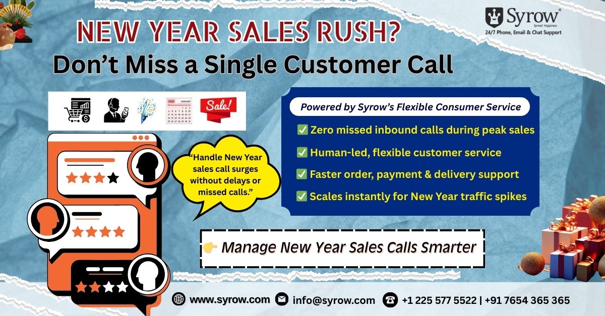 Inbound Call Management for E-commerce | e-commerce inbound call support | New Year sales customer support | flexible customer support for online retail | inbound call outsourcing for e-commerce | omnichannel customer support services | Syrow customer support services | e-commerce call center solutions | New Year peak sales support | Handling high inbound call volumes during New Year sales with flexible customer support |