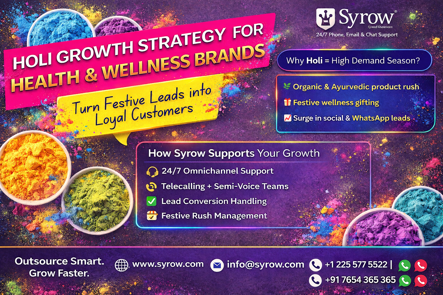 Outsourcing Customer Support for Event & Wellness Businesses during Holi | Grow Faster with Syrow…