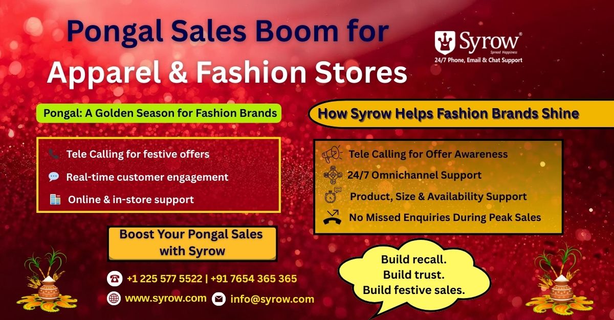 Pongal is much more than the sales season for brands—it is the opportunity to make a lasting impact on brands. For clothing and fashion brands, Tele Calling by Syrow is accompanied by their 24×7 customer support services in order to ensure that no consumer is left untouched and no query is postponed.