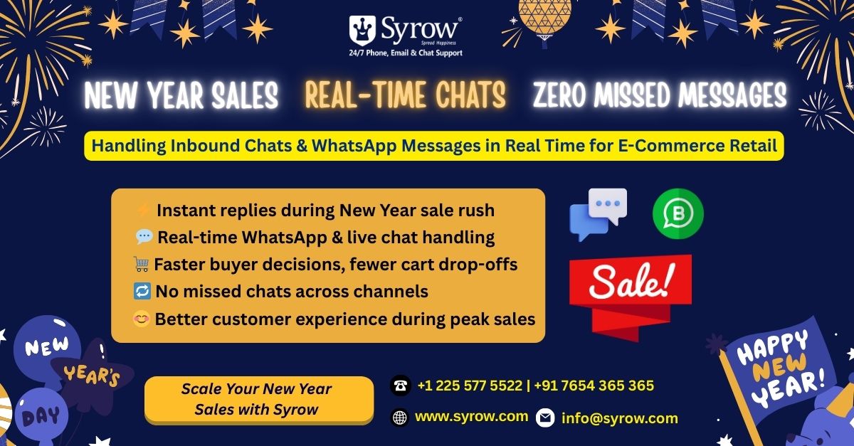 In this blog, we will learn how Syrow handles inbound WhatsApp and chat support for e-commerce marketplaces around New Year sales, ensuring zero missed messages, faster conversions, and happier customers.
