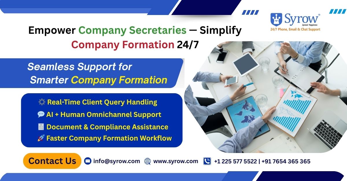 Syrow customer support | company formation services | omnichannel CX solutions | 24/7 business support | startup registration assistance | AI + human customer service | client communication support | business incorporation help | Syrow CX for company formation | continuous customer engagement | company secretary customer support | omnichannel support for company secretaries | AI-powered support for CS firms | company formation customer service | company registration helpdesk | 24/7 client communication for CS | outsourced CX for company secretaries | Syrow omnichannel customer service | AI + human customer support | company formation automation | business registration support | client experience for company secretaries | Syrow customer support outsourcing | AI-driven CX for CS professionals | company incorporation customer service