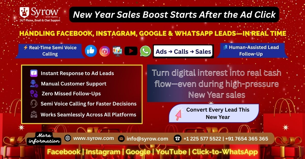 Here’s where Social Media Lead Management for E-commerce plays an important role. Let’s say there is a lag response, an auto-response, or just an overlooked follow-up response, and this drives potential customers with high purchase intent into the classified category of ‘lost business. Syrow’s service with the qualities of semi-voice calling and manual customer service support helps e-commerce sites turn FB and ‘Gram’ leads to actual cash flow, even in the High Pressure ‘New Year’ campaigns.