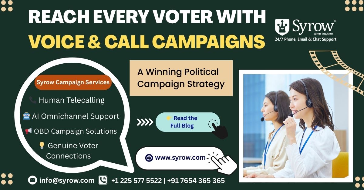 In today’s fast-paced environment, political parties need to engage with voters at speed and at a personal level. From election call center services to next-generation voice broadcasting services for elections, new technologies assist candidates in connecting more, instilling confidence, and gaining the vote. This article discusses how Syrow Telecalling services by human, AI-driven omnichannel customer care, and OBD campaign solutions enable parties to establish genuine connections.