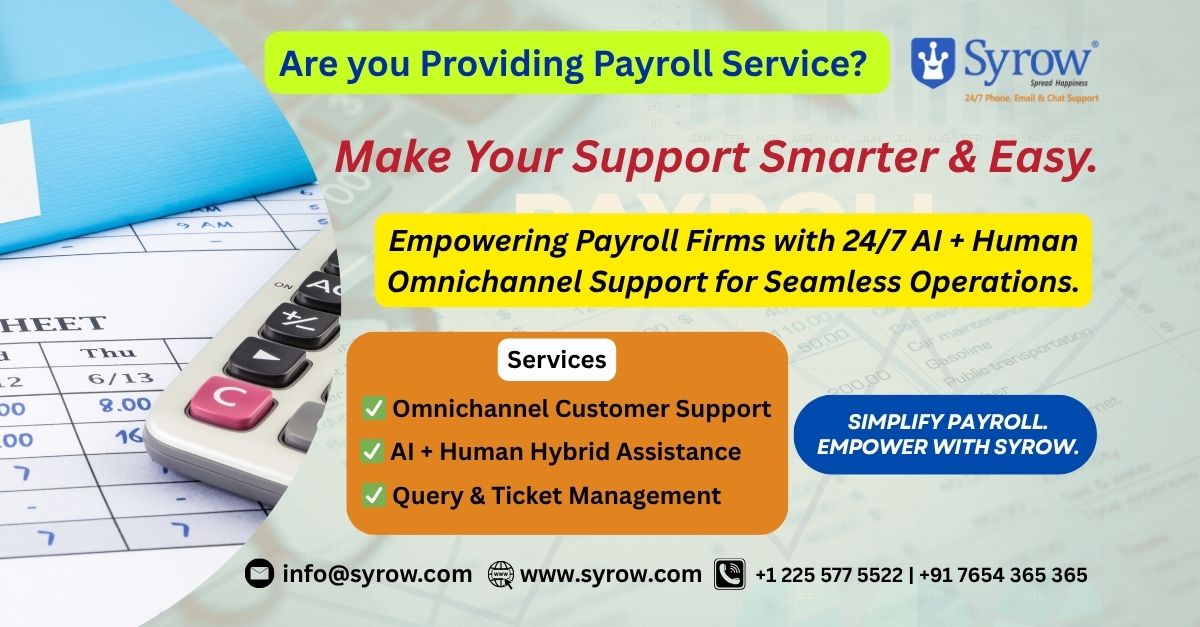 Ready to Redefine Payroll Support? In a time when customer experience defines business success, choosing a partner like Syrow is not just about upgrading but a complete transformation. With 24/7 omnichannel customer support for payroll firms, Syrow empowers businesses to deliver faster, safer, and smarter communication that builds lasting trust with clients.